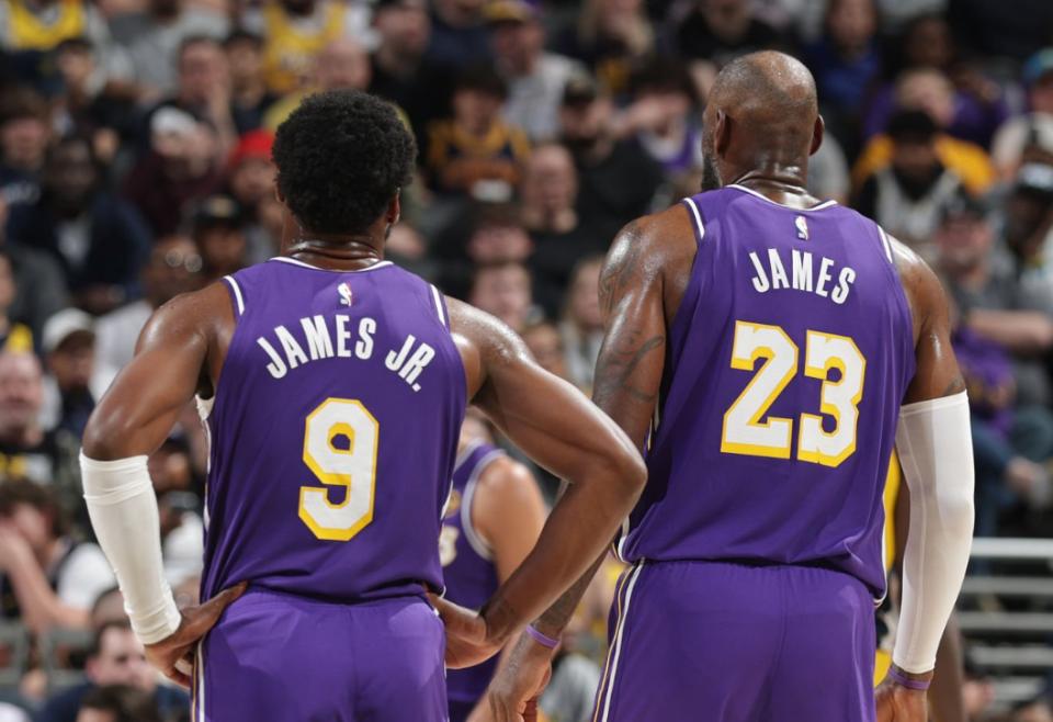 On March 26 Beijing time, James and his eldest son Bronny stood together on the court, helping the Lakers defeat the Pacers. James played 34 minutes and 28 seconds, scoring 23 points, 9 rebounds, 9 assists, and 1 steal; Bronny played 13 minutes and 22 seconds, scoring 4 points, 1 rebound, 1 assist, 2 steals, and 1 block. After the game, James spoke to The Athletic about Bronny.
