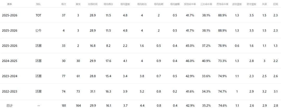 Clearly, Ivey was once a prodigy. Since entering the NBA, he was heavily utilized by the Pistons: rookie season averaging 16.3 points, 3.9 rebounds, 5.2 assists; sophomore season 15.4 points, 3.4 rebounds, 3.8 assists; third season 17.6 points, 4.1 rebounds, 4 assists. However, injuries gradually dimmed his spotlight, and as described, he became a trade asset, bringing his talent to Chicago.