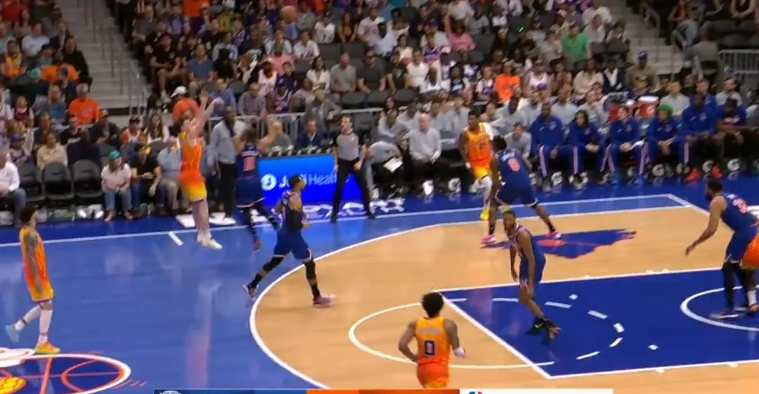 Today, he twice scored over Towns' defense, hit various difficult stop-and-go three-pointers, and even sank a three-pointer from this spot during a fast-break transition—it's truly remarkable. Clarkson defended him like chasing Curry, but if Clarkson was even slightly slow getting through a screen, Kon seized the opportunity and scored.