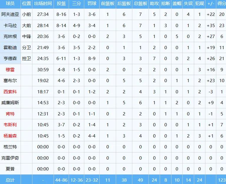 Ultimately, Yang Hansen played the final 10 minutes and 45 seconds of this game, shooting 5 for 1 (0 for 2 from three-point range). His shooting was poor, but he actively created fouls, went to the free-throw line four times and made all shots, contributing 6 points, 4 rebounds (1 offensive rebound), 1 block, with 2 turnovers and 3 fouls, a plus-minus of +1, helping the Trail Blazers爆锤 the Wizards 123-88 at home.