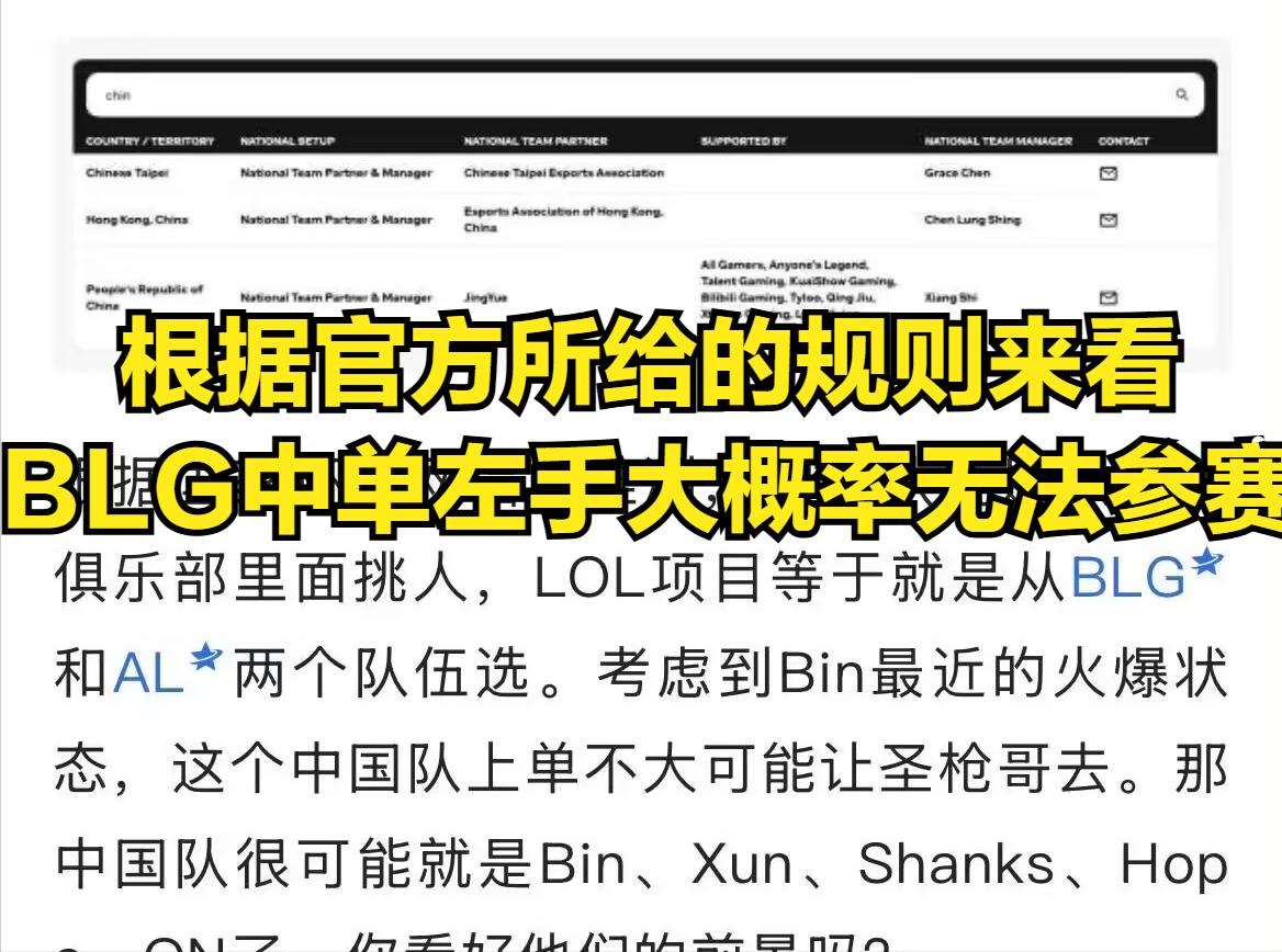If the rules remain unchanged, BLG's mid-laner is likely unable to join the "national team" since AL's jungle and support players and BLG's AD player are Korean imports,不符合参赛要求. This means BLG's jungler XUN, support ON, and AL's AD player Hope are guaranteed spots. Thus, only the top-laner and mid-laner positions remain undetermined. Bin's theoretical strength surpasses AL's top-laner, making Bin a strong candidate.