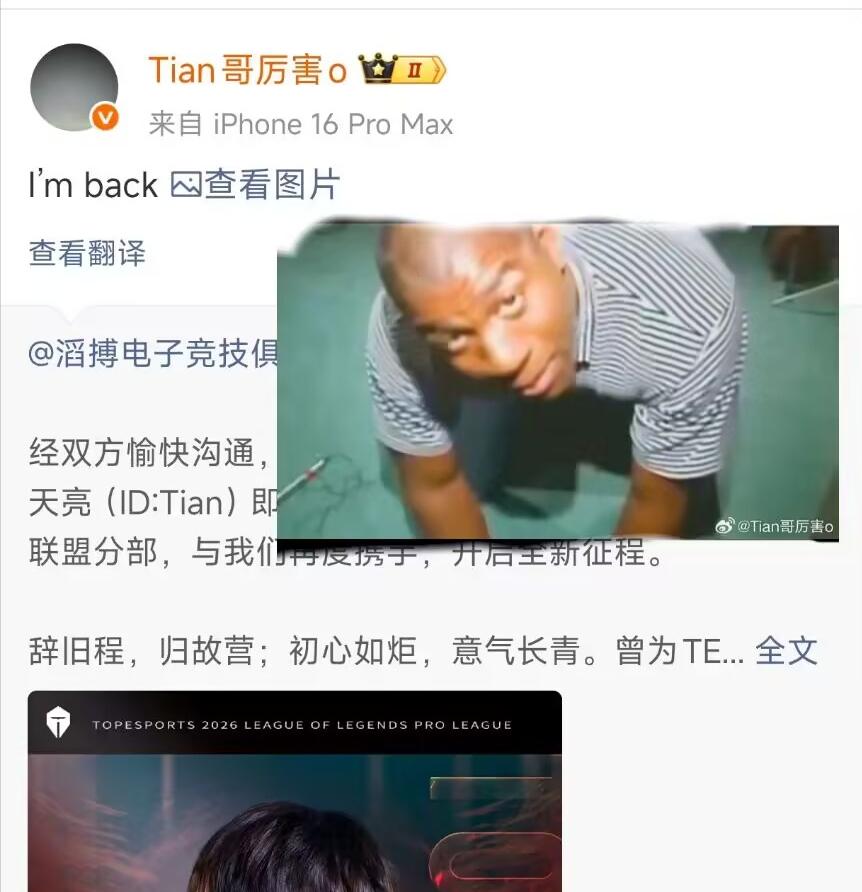 Besides AL's "announcement mishap," TES jungler Tian recently sparked discussion with a "kneeling" meme. Recall that Tian mentioned in a past livestream that he felt "great pressure" during TES matches, with remarks like "fake carry" and "stealing MVP" misunderstood by many TES fans. Consequently, numerous TES supporters opposed Tian's return, even flooding TES captain JackeyLove's stream with attacks against Tian.