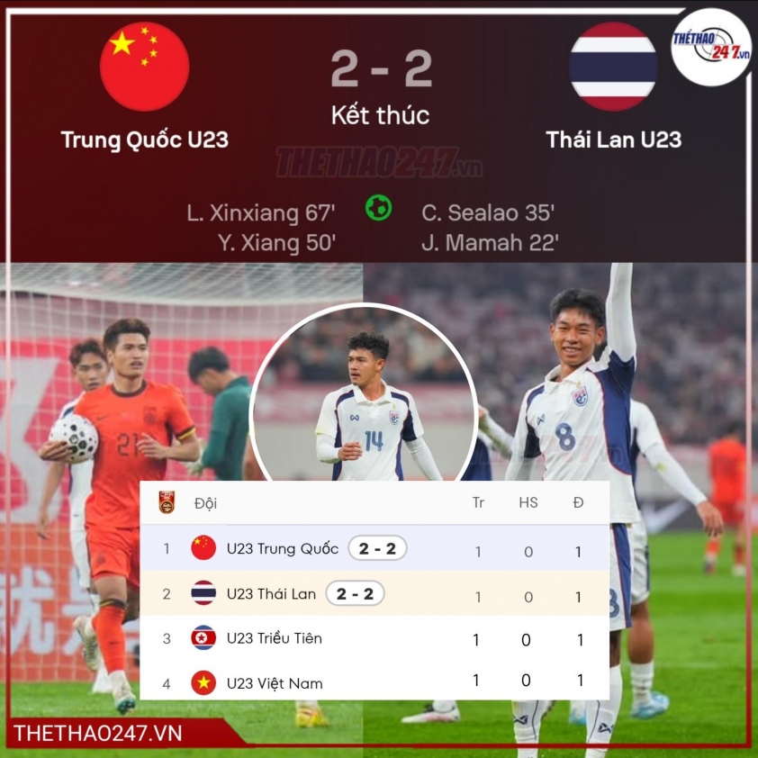In the opening match, Thai U23 drew China U23 with a score of 2-2. Thailand scored two goals in the first half, before the host China equalized in the second half. In the other match, Vietnam U23 drew with North Korea U23 1-1, leaving all four teams with one point after the first round.