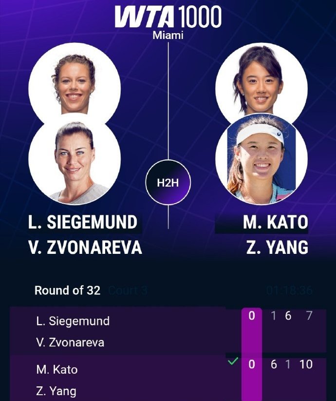 Doubles arena: In first-round matches, Chinese duo Xu Yifan/Jiang Xinyuan came from behind, reversing No. 5 seeds Danilina/Krunich 3-6 6-4 10-4, advancing smoothly; Sino-Japanese duo Yang Zhaoxuan/Kato Miwi also performed well, defeating former tournament champions Siegemund/Zvonareva 6-1 1-6 10-7, getting a winning start.