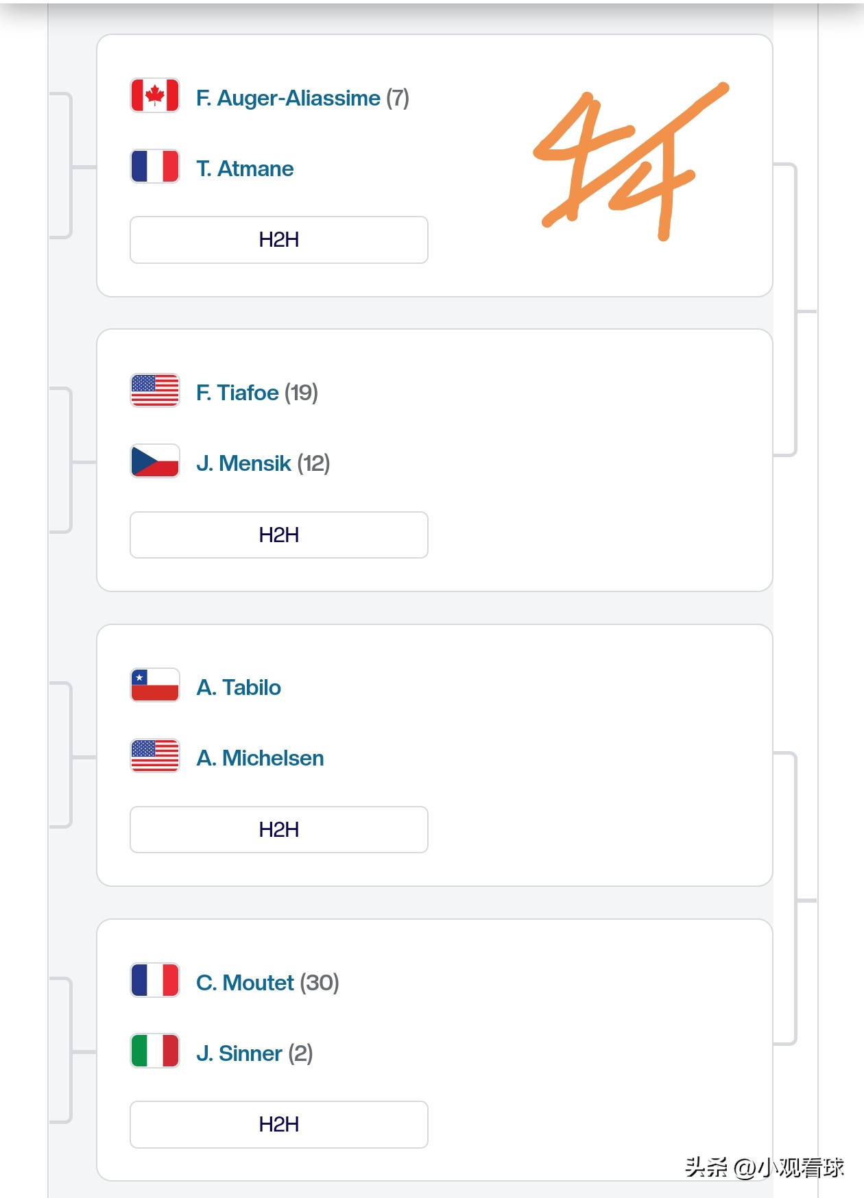In the contests between Tabillo and Michelsen, and Mutai and Sinner, Sinner, as the highest-seeded player in the section, faces Mutai's challenge with little pressure; the Italian is highly likely to advance easily. The Tabillo versus Michelsen match is evenly poised; Michelsen, leveraging the hard court advantage of American新生代选手, is more likely to prevail.
