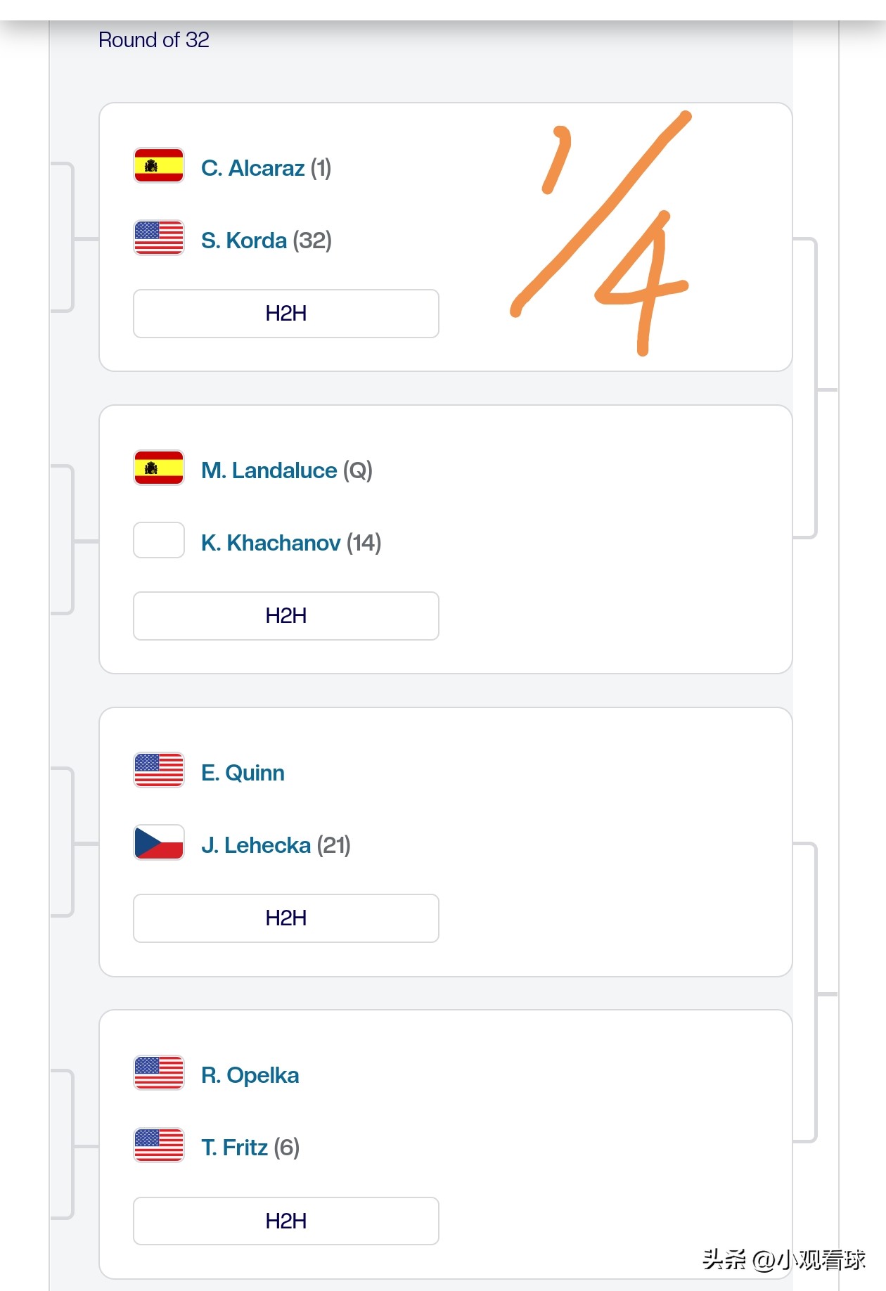 Furthermore, the matches between Landaluce and Khachanov, and Quinn and Lehecka, are contests with clear disparities in strength. Lehecka and Khachanov, as seeded players, with their more stable technical and tactical execution, have relatively higher chances of advancing.