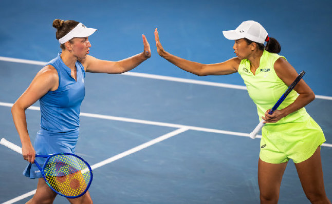 Doubles arena: In a quarterfinal match, fourth seeds, the Chinese-Belgian pair Zhang Shuai/Mertens, staged a remarkable comeback from a 5-9 deficit in the decisive set tiebreak, saving four consecutive match points, ultimately clinching a dramatic 2-6 6-3 14-12 victory over Hunter/Pegula to advance to the semifinals.