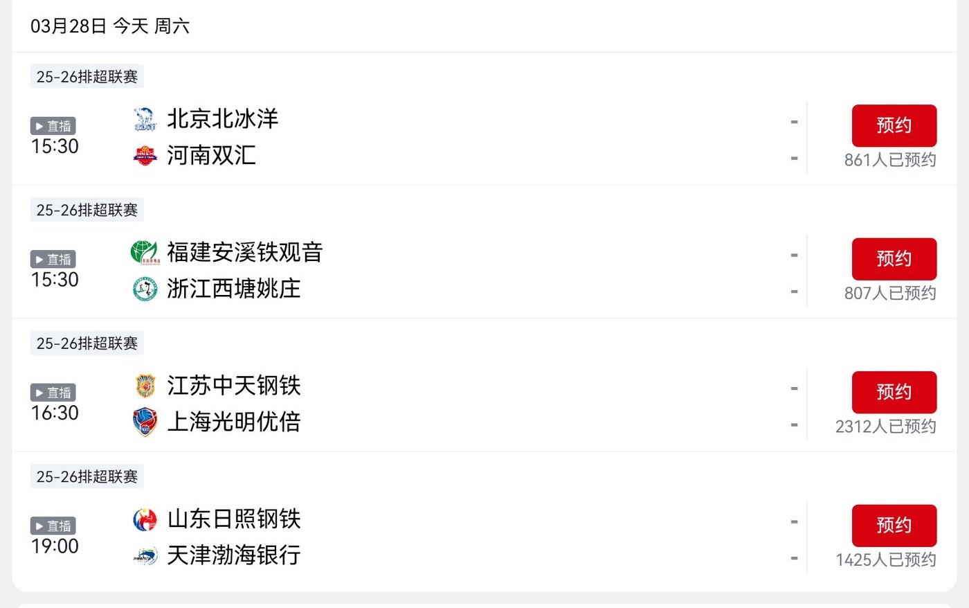 According to the schedule released by the organizing committee, the women's volleyball final between Jiangsu Zhongtian Steel and Shanghai Guangming Youbei will start at 4:30 PM today.