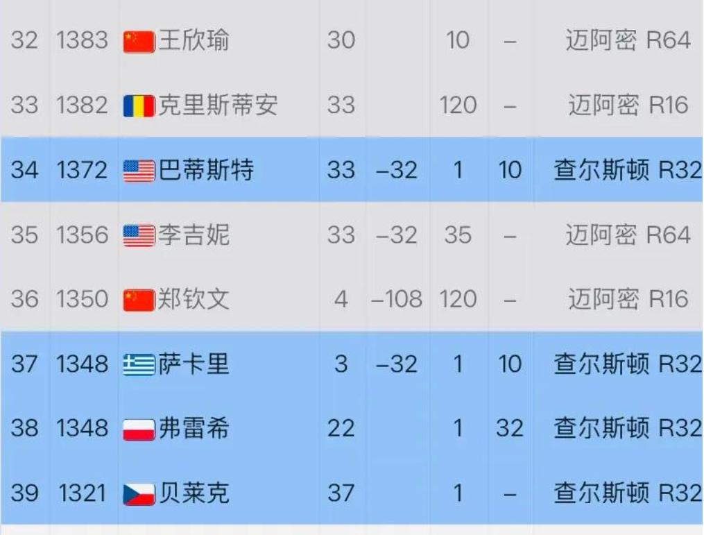 The reason Zheng Qinwen was quickly replaced by Wang Xinyu after the Miami event stems from her not entering the Charleston 500 tournament. Last year she reached the quarter-finals there; after deducting 108 points, her ranking plummeted, giving Wang Xinyu the chance to regain the top spot.