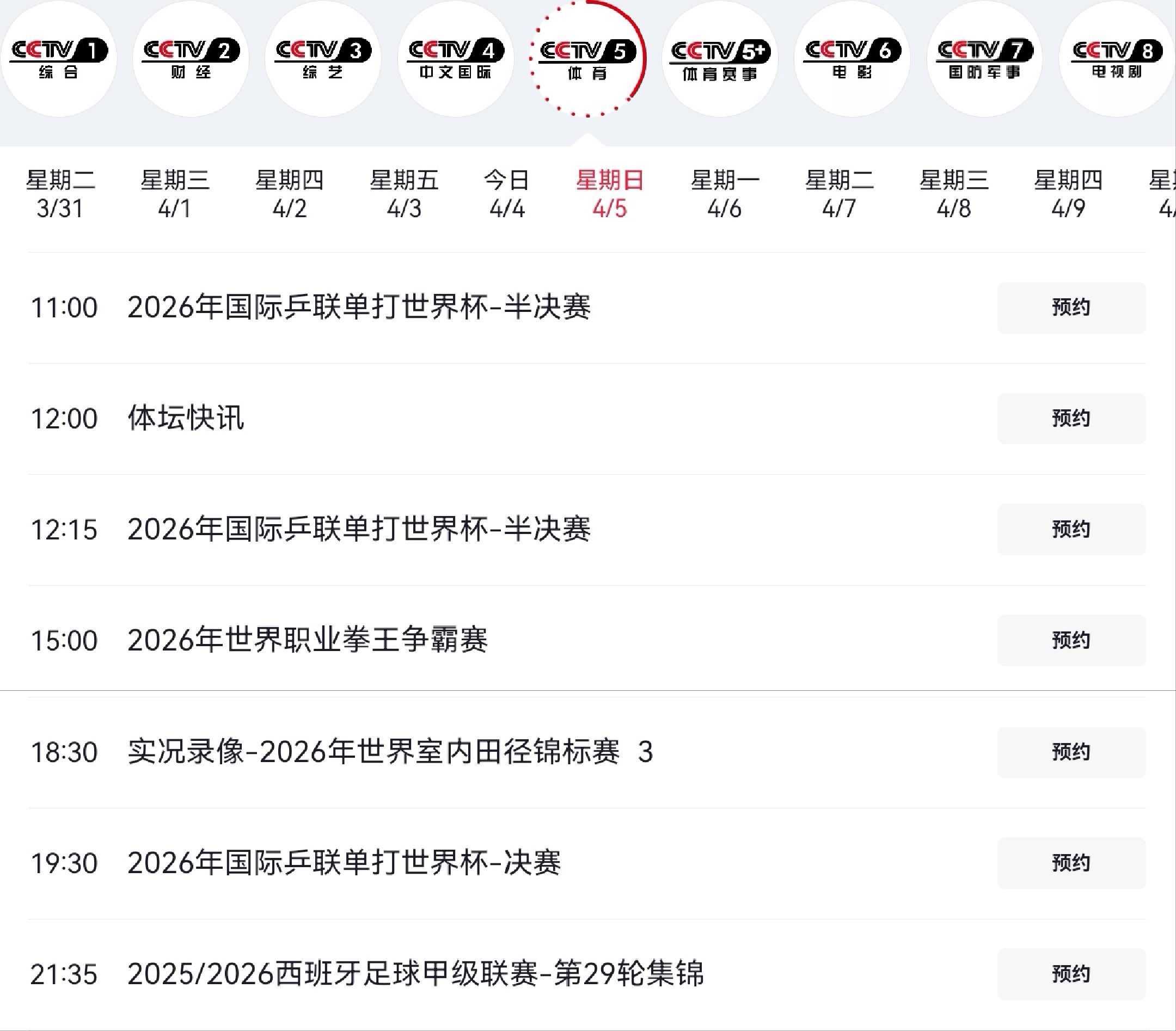 Details of the CCTV-5 live broadcast plan are shown in the image below.