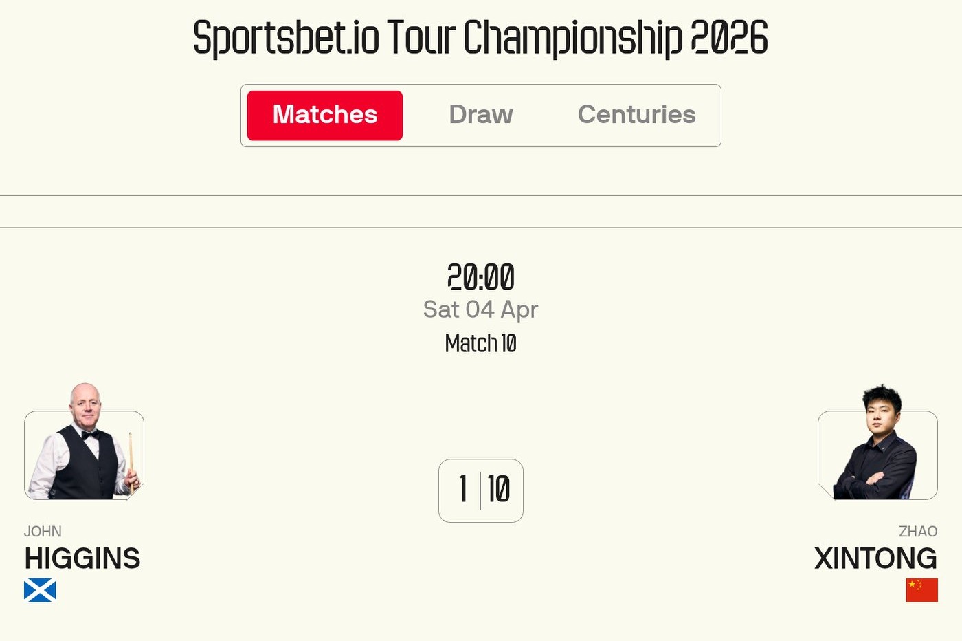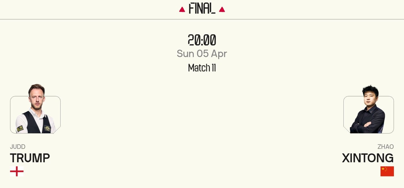 Latest update from the Snooker Tour Championship: Zhao Xintong defeats Higgins 10-1, advances to final against Trump.